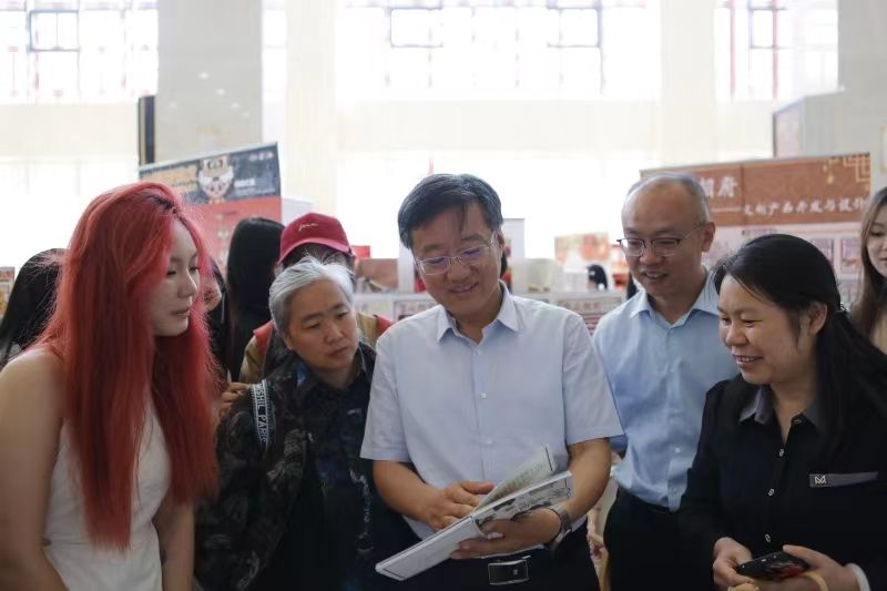 开幕式后,张校长一行在学院领导和老师的陪同下,对学生的毕业设计作品进行了参观,毕业生结合自己的作品进行了阐述,张校长对作品所展现出的创意与品质给予了高度的肯定与赞扬。
